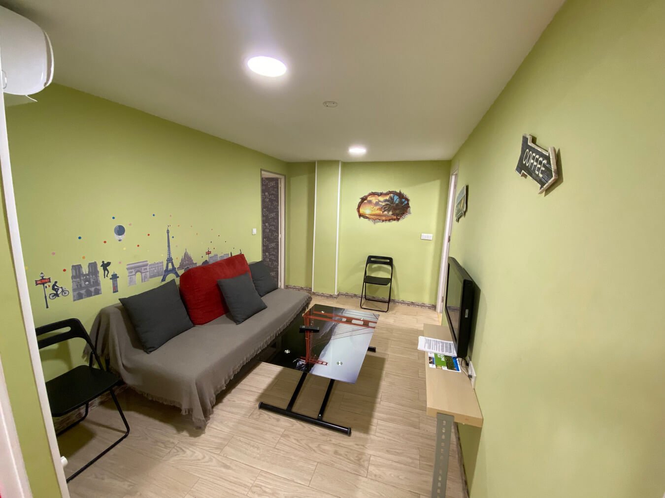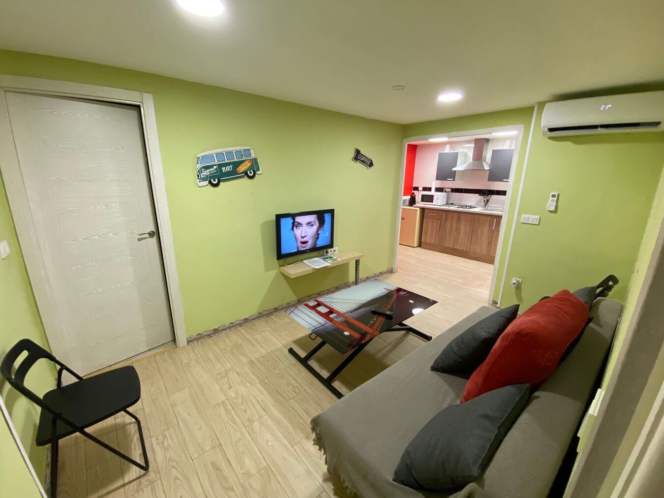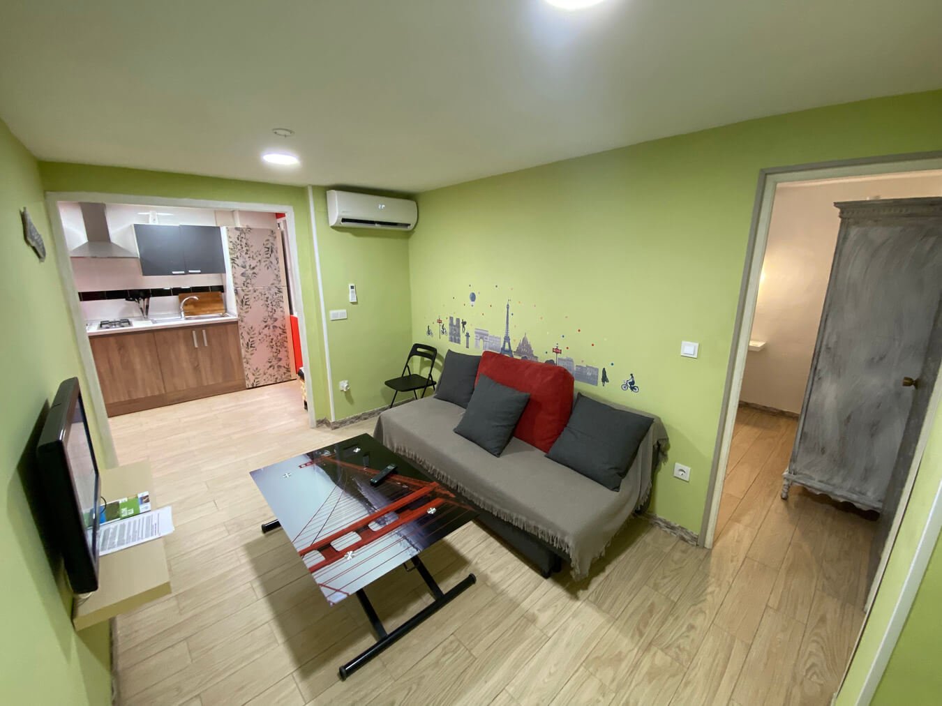 Entreplanta, muy pocos escalones. Apartamento interior con aire acondicionado, ventanas con excelente aislamiento , suelo gres de simulación madera